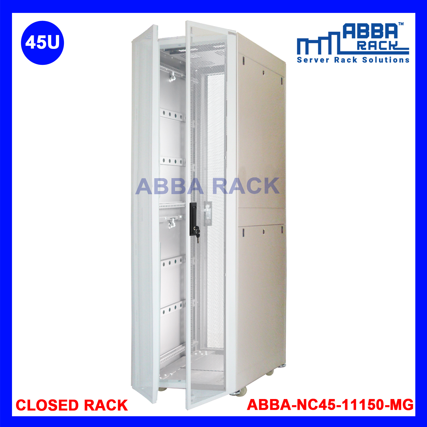 ABBA RACK 19" Closed Rack 45U - 1150mm - Split Door - Front & Rear - Grey