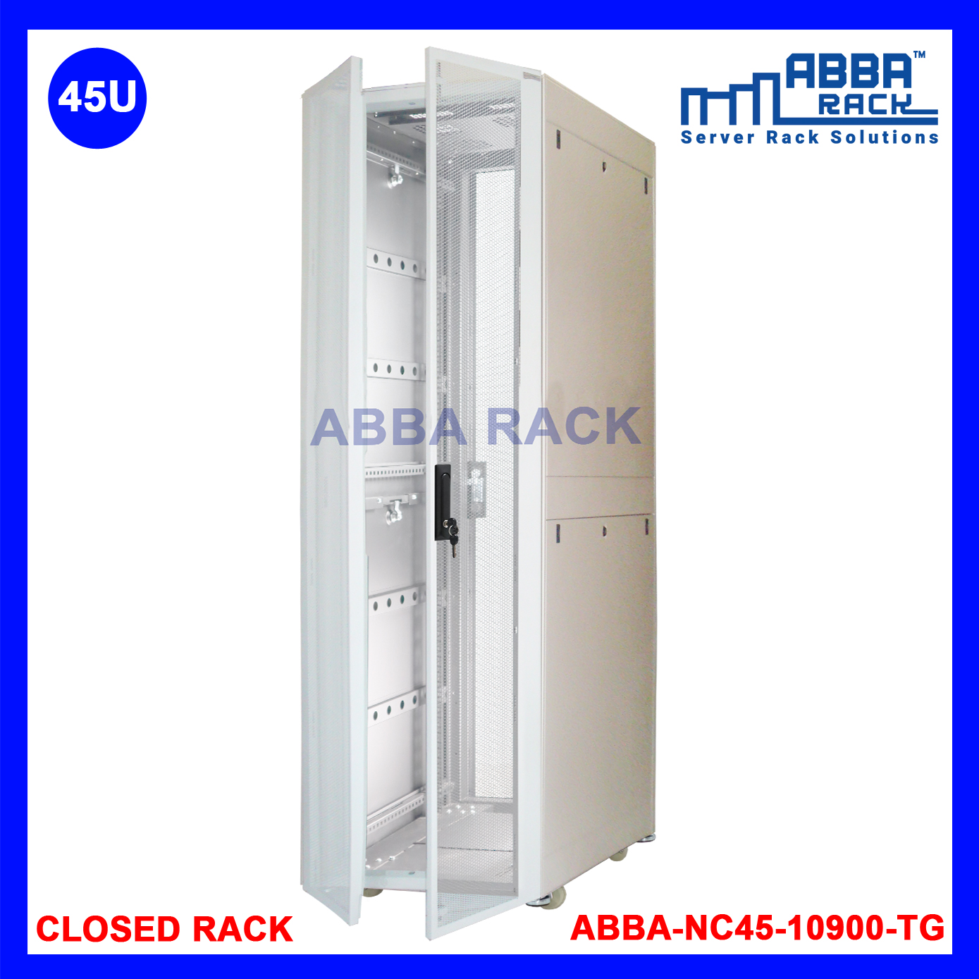 ABBA RACK 19" Closed Rack 45U - 900mm - Perforated Front - Split Door - Grey